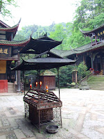 Al alba, cuando todavía duerme todo el monasterio, me levanto y corro a la estancia más alta del mismo. Los monjes se preparan para los rezos y el palafrenero se encarga de encender cirios e inciensos. Me arrodillo al exterior de la pieza y sigo con emoción los cánticos y el toque que anuncia que la vida vuelve con los primeros rayos de claridad celeste. Habrá sobrevivido el palafrenero?, y su hija, que se acogió a los hábitos desde temprana edad y pidió que permitieran vivir a su padre viudo ayudando en las labores del monasterio? Una de las decanas del monasterio, levantada antes que desapareciera el manto negro del cielo de Qingcheng, me hizo un gesto al cruzarnos en el patio central. Esperé a que terminara de encender sus cirios e hice yo lo mismo. El patio vacío era propicio para pensar, el incienso envolvía las maderas trabajadas y las columnas donde reposa el altar a espalda de la entrada. De la cocina comenzaban a salir los vapores donde se preparaban los tallarines y las salsas picantes que nos despertarían completamente a la hora del desayuno.